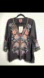 Beautiful New Johnny Was Tiwa Linen Black Peasant Blouse featuring vibrant floral embroidery for a free-spirited global look.