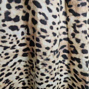 This Leopard Johnny Was dress features a striking animal print with intricate floral and tiger embroidery. The maxi length offers a flowing, elegant silhouette, perfect for making a statement. Crafted with attention to detail, it combines comfort and style in a unique design.