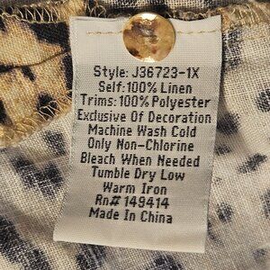 Johnny Was Linen Woman Leopard Floral Mini Dress 1X Boho Luxe Statement Embroide