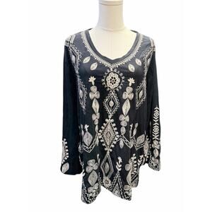Johnny Was Liona V-Neck Kimono Sleeve Embroidered Top – Women’s Size XL (Tag Removed, Pit to Pit 24”)