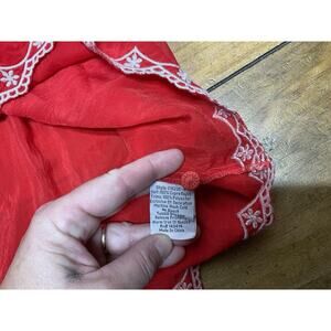 The Johnny Was Lissa Embroidered Floral Peasent Tunic Top in Rayon is a stylish and versatile piece perfect for women in size XS. This red and multi-color blouse features a V-neckline, short sleeves, and intricate floral embroidery accents. With a relaxed fit and lightweight material, this tunic is suitable for all seasons and offers a breathable feel. The bohemian and romantic theme adds a touch of charm to this basic yet chic piece from the popular brand Johnny Was.brand new we ship fast measurements are in the pictures