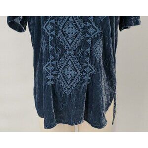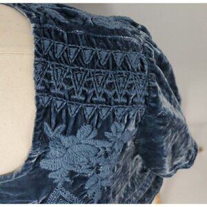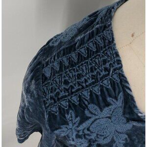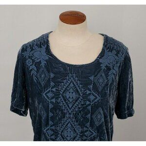 Johnny Was Los Angeles Green Blue ? Velvet Embroider Short Sleeve Top Size XS