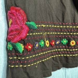 Johnny Was Los Angeles brown embroidered top size small