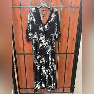Johnny Was Love 100% Silk Floral lace Print 1/2 Sleeve maxi dress