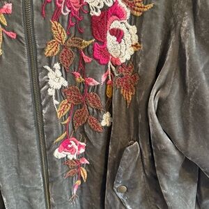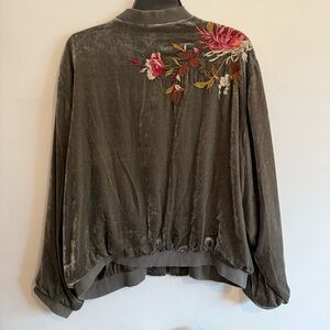 Johnny Was Lucy Crepe de Chine Embroidered Green 100% Silk Bomber Jacket Sz XXL