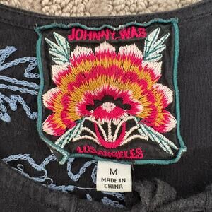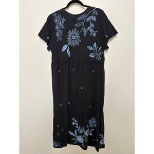 Johnny Was Lyra Tiered Ruffled Knit Dress Black Blue Floral Size Medium