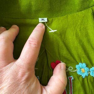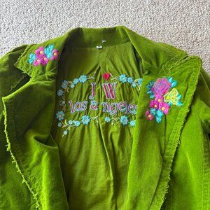 Johnny Was M Boho Olive Green Corduroy Blazer Jacket Bird Floral Embroidered