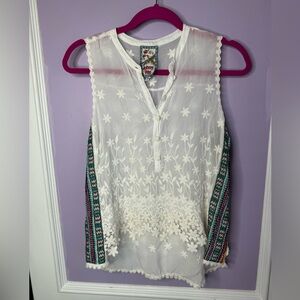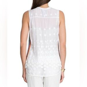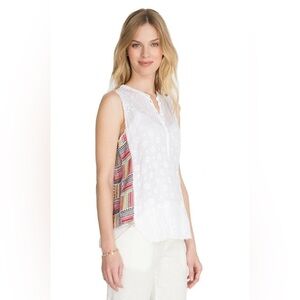 "Malin Tank" Sleeveless tonal embroidered blouse with buttons