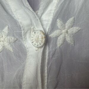 EUC. Only known flaw is 3rd button from top has makeup. Could be cleaned. Replacement button on tag.