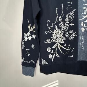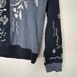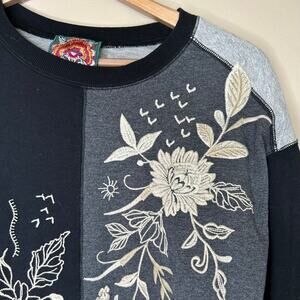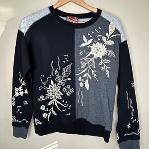 Johnny Was Maree Black Gray Color Block Small Embroidered Floral Sweatshirt