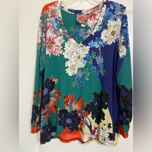 Johnny Was Marritt Favorite V Neck Long Sleeve Tee Shirt Top. Floral Print Soft