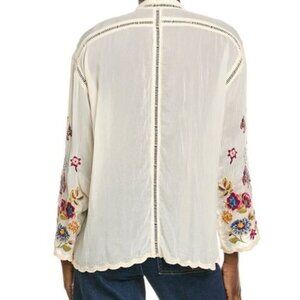 Johnny Was Maude Blouse Mathilde Embroidered Floral Butterfly Rayon Top Cream