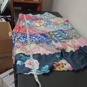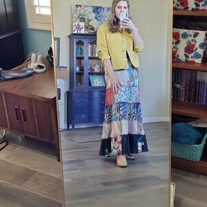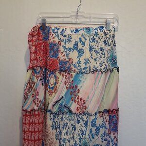 Features: Johnny Was Dunas Mixed Print Long Tiered Skirt Blue Yellow Pink