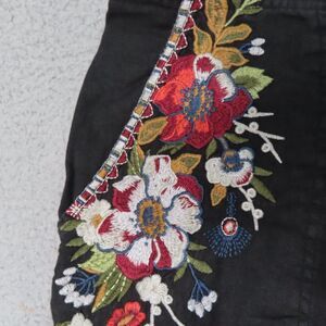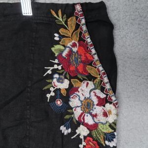 Johnny Was Mini Shorts Womens XL Black Beatriz Linen Boho Floral Embroidered