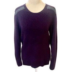 Johnny Was Mishika Cashmere Embroidered Sweater Waffle Knit Purple Size L