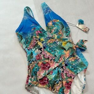 Johnny Was Mixi One Piece Swimsuit Wrap Style In Multi new with tags floral aqua