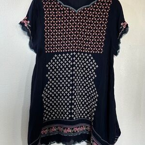 Johnny Was Moji Floral Embroidered Tunic Top Size M