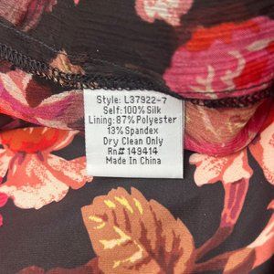This dress features a V-neck, delicate silk fabric, coordinating interior dress/slip, and vibrant floral motifs that come together for a gorgeous statement piece. Accessorize with layered necklaces, a neutral handbag, and your favorite heels for a sophisticated look.