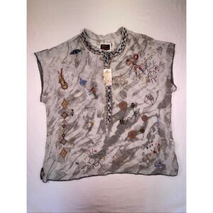 Johnny Was Multicolor Josefina Embroidered Bees Boho Silk Blouse Size 2X NWT