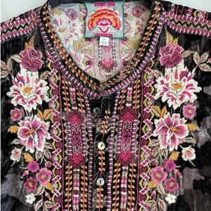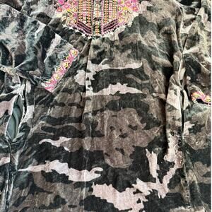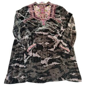 Johnny Was Multicolored Embroidered Camo, Silk/Velvet, Long Sleeve Dress- XL
