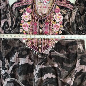 Johnny Was, Embroidered Camo, Velvet, Long Sleeve Dress