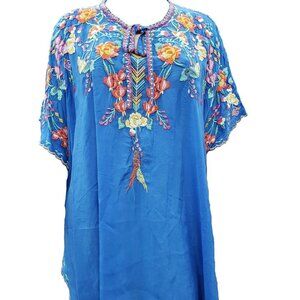 Biya by Johnny Was. "Myanmar fur coat". Faux fur coat with multicolored floral embroidery.