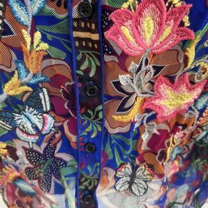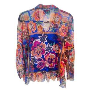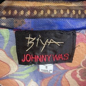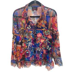 Johnny Was NWOT Mazzy Mesh Blouse Button Down Ruffles Sz S Long Slv Embroidered