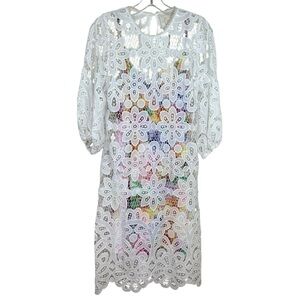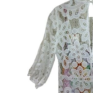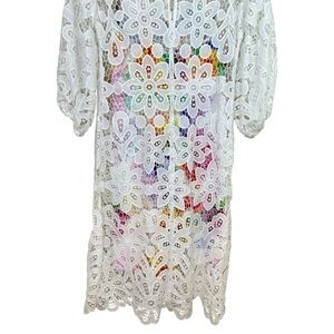 Johnny Was - NWT ‘Lisetta’ Lace Mini Dress in Ivory w/ Floral Slip - White Small