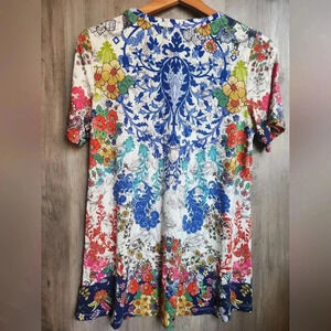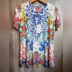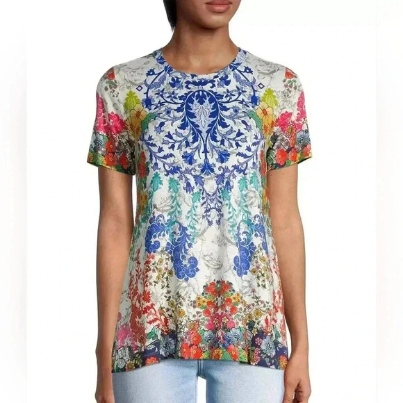 Johnny Was NWT Shellinay Favorite Short Crew Swing Shirt Tee Colorful Floral SM