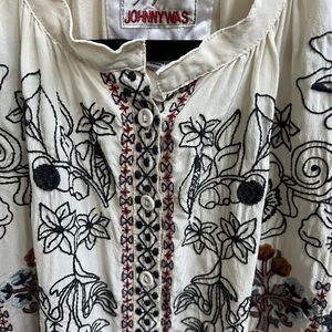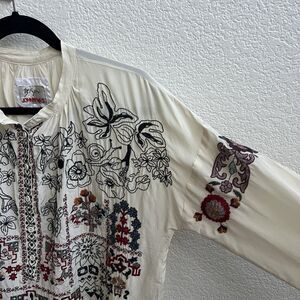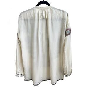 Johnny Was NWT Silk Tunic Blouse Button Down Embroidered Cream Sz S Oversized