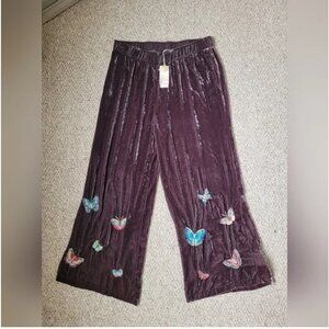 Johnny Was NWT Velvet Wide Leg Pants butterfly embroidery Brown size XXL