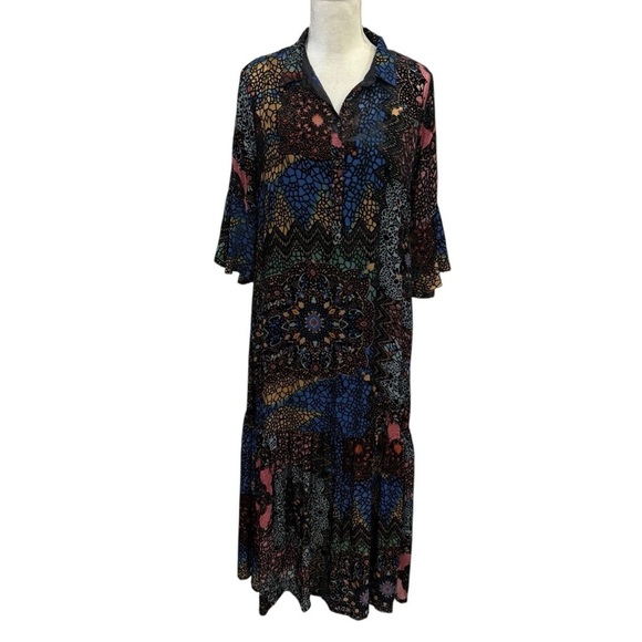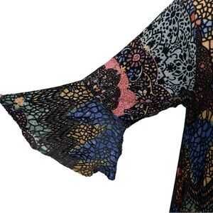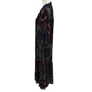 Johnny Was Nash Burnout Velvet Patchwork 3/4 Bell Sleeve Dress Small Multicolor