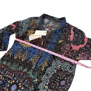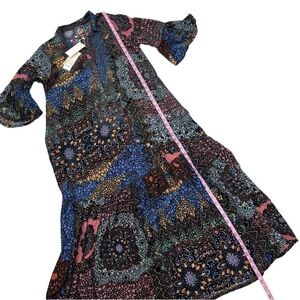Johnny Was Nash Burnout Velvet Patchwork 3/4 Bell Sleeve Dress Small NWT Multicolor