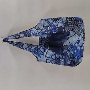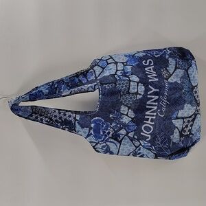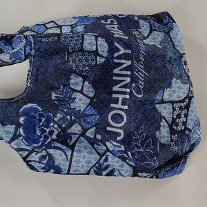 Johnny Was Nylon Reusable Tote Shopping Bag Blue On Blue Flower Print