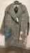 Elegant gray jacket with blue embroidery. Features floral lining and intricate details.