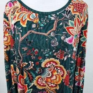 Size large Johnny Was Orizaba Puff Sleeve Top. 95% rayon 5% spandex. Designed from a lightweight material. Pull over style. Round neck. Long puff sleeves with elastic at the sleeve openings and vintage flowers in orange tones. Pit to pit 20.5” Length 27”. Brand new and never worn. Excellent condition.