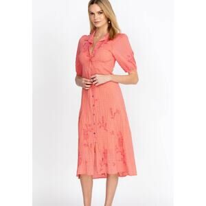 Johnny Was Orla Cotton Shirt Dress PeachPink Vintage Look XS Feminine Embroidery