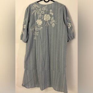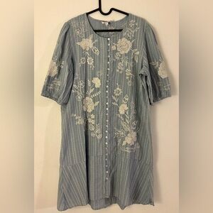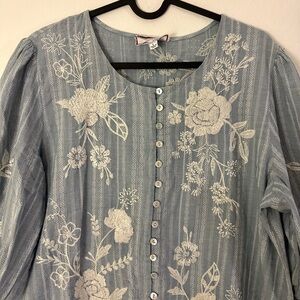 Johnny Was Osiris Puff-Sleeve Buttoned Minidress - Denim Blue - Size Large