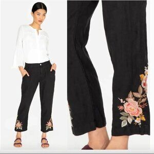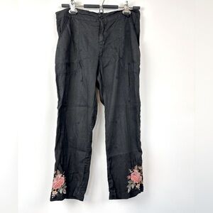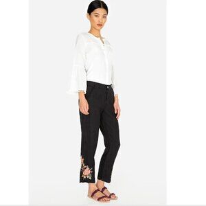 Johnny Was Paola 100% Linen Embroidered Floral Pants Medium