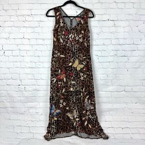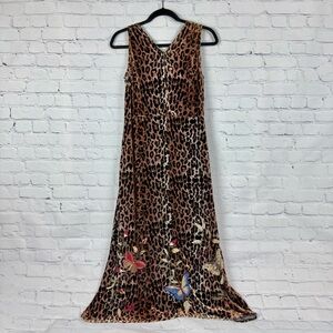 Johnny Was Penelope Velvet Embroidered Leopard Print Maxi Dress Small Cheetah