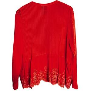 Johnny Was Peplum Top Womens L Red Embroidered Floral Scalloped Boho Cottagecore