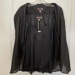 Johnny Was Pete & Greta 2-Piece Black Silk Blouse Beaded with Cami S