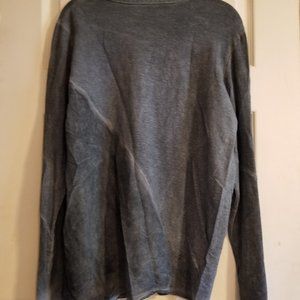 Johnny Was Pete & Greta Gray Silk Contrast Tee, great condition. Scoop neck with long sleeves. Asymmetrical semi-sheer silk contrast panel.