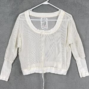 This Y2K era Pete & Greta (Johnny Was) Mesh Pullover Top in Ivory offers a blend of elegance and comfort. Featuring a unique drawstring collar and lightweight mesh fabric, it’s perfect for layering. Size Small, this piece is an easy way to add a bohemian touch to your wardrobe.