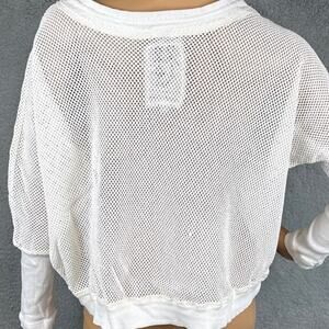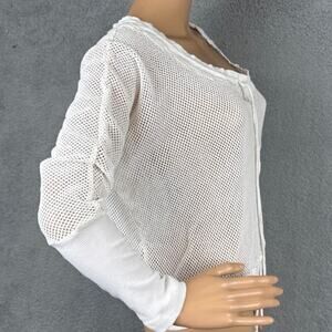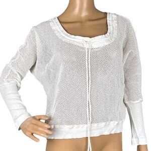 Johnny Was Pete & Greta Mesh Pullover Top Drawstring Collar Ivory SZ S Versatile