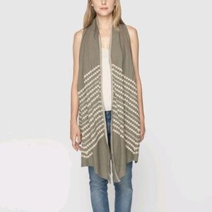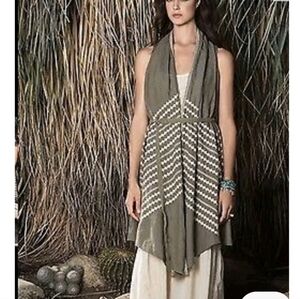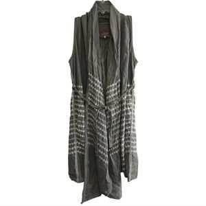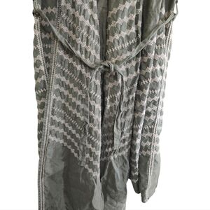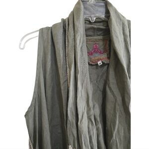 Johnny Was Petra Linen Embroidered Belted Vest Army Green Medium Drape Lapels