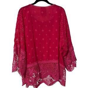 Johnny Was Pink Embroidered Crochet Floral Boho Blouse Top Size Medium