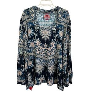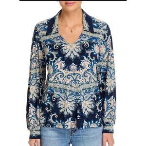 Johnny Was Plus 3x The Janie Favorite Puff Sleeve Polo Tee T-Shirt Roman Paisley