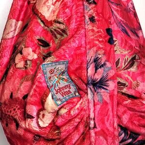 Johnny Was Bag Luxurious plush textile in vibrant pink and soft cream. Perfect for warmth and comfort.