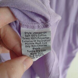 This elegant blouse by Johnny Was showcases a rich purple hue with intricate embellishments around the V-neckline. The short sleeves and boxy fit offer a relaxed yet stylish silhouette, perfect for casual outings. The decorative details add a touch of sophistication to this versatile top.